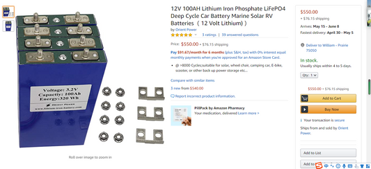 12V100Ah LiFePO4 battery pack with Busbar connection( Free Shipping)